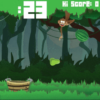 Use the noise level of your crowd to control the basket and catch fruit. Get loud to make the basket go to the right. Getting quieter will make the basket go to the left. Be ready for the “Gorilla Bonus”