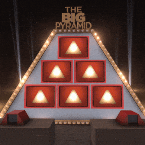 Two teams face off in front of a “Pyramid” of six categories. Players will guess words or phrases in a category, based on the description given by their partner. The team with the most points goes on to play in “the winner’s circle”